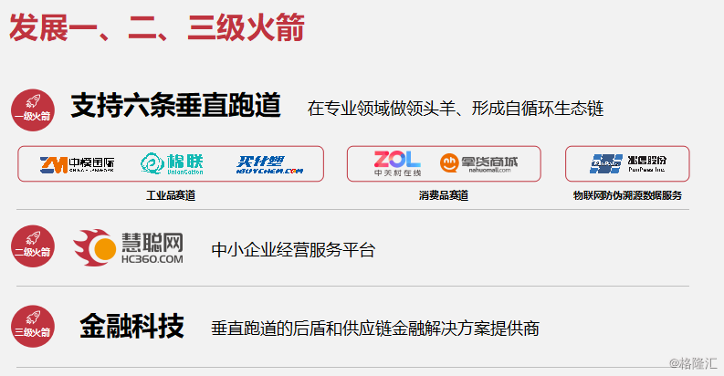 第一级火箭目前涵盖6条垂直赛道,包括工业品类:中模国际、棉联、买华塑,以及消费品类:中关村在线、拿货商城、防伪溯源类:兆信股份。