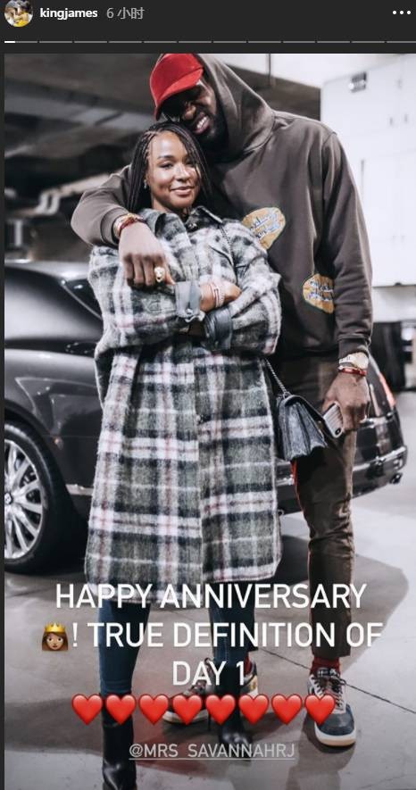 直播吧9月15日讯湖人球星勒布朗-詹姆斯今日更新个人Ins晒出和妻子的亲密合照,并配文说:“结婚纪念日快乐