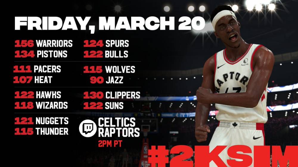 3月21日讯NBA赛季暂停之后,游戏《NBA 2K20》就开始用自家游戏模拟每日赛果。