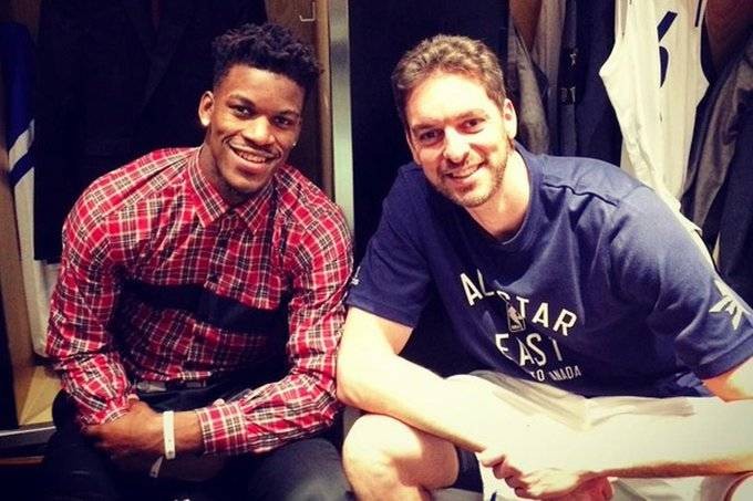 直播吧9月15日讯今天是热火球星巴特勒的生日。前队友、NBA名将保罗-加索尔更新了社媒为其送去了祝福。加索尔晒出了一张两人的合照,并写道:“祝我的小兄弟生日快乐!”大加曾经在2014-15和2015-
