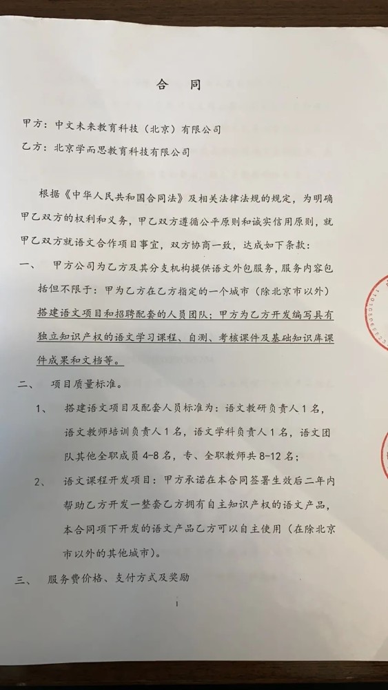 2015年,学而思与中文未来已签订了向我们购买大语文教学、教研内容的合同。