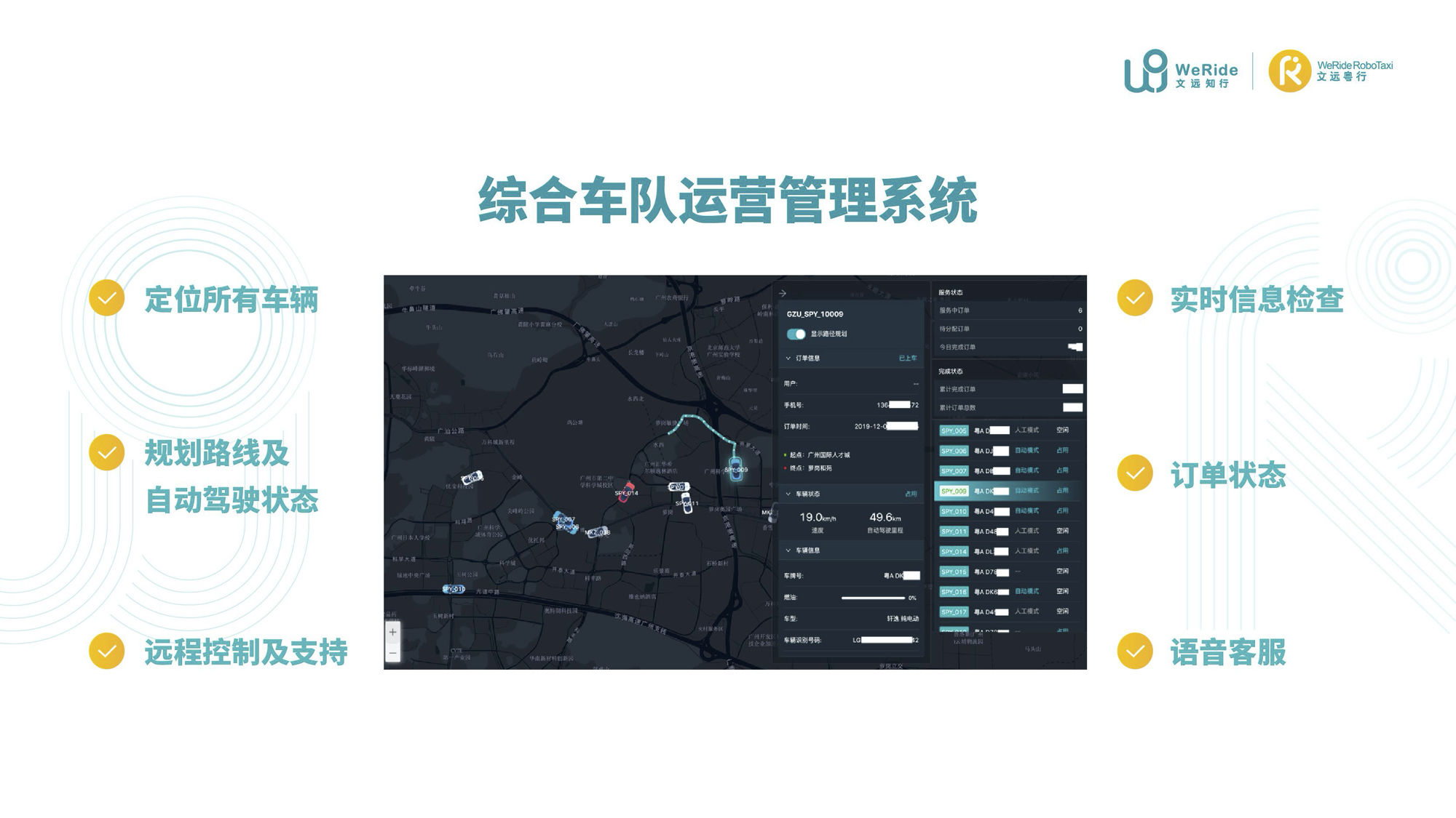 而在中国国内,从 2019 年 11 月 28 日开始,自动驾驶出行公司文远知行 WeRide 的 RoboTaxi 车队,在广州市黄埔区、广州开发区也正式开启试运营服务。这项试点服务是通过文远知行旗下合资公司文远粤行,与广州市白云出租汽车集团、科学城(广州)投资集团一道推动实现的,是文远知行在 RoboTaxi 商业化上取得的又一重大进展。