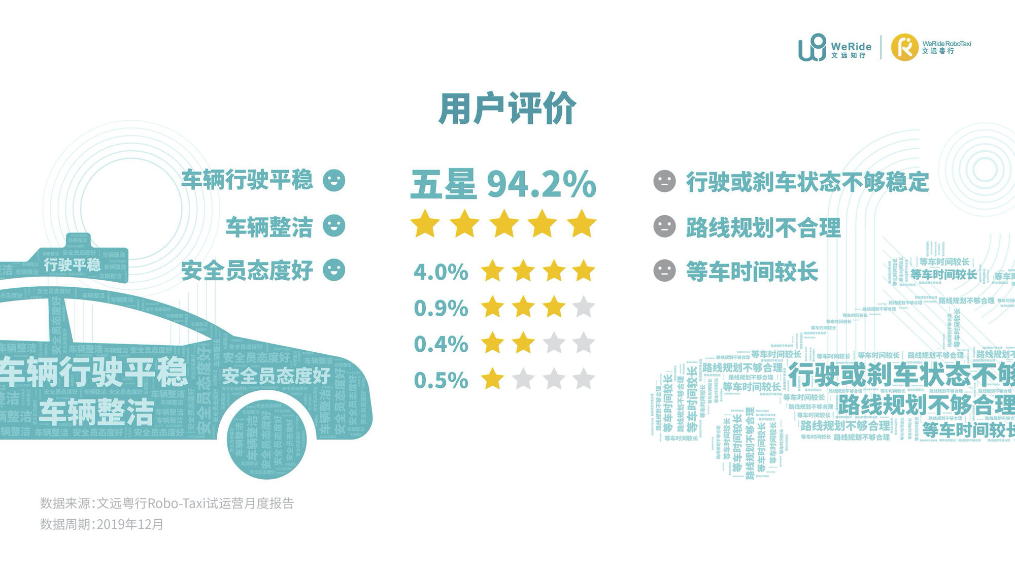 白云出租集团副总经理王建红在接受媒体采访时表示,文远粤行无人车队在试运营首月的表现与传统出租车的运营效率接近,还带来了更智能化的服务体验,他个人很期待未来规模化运营后的无限可能。据文远知行创始人兼 CEO 韩旭透露称,2020 年文远粤行的 Robo-Taxi 将迎来更具规模化的一年。公司计划在部分区域逐步拿掉安全员,实现真正的无人驾驶出行体验,这将是文远知行接下来工作的重点。