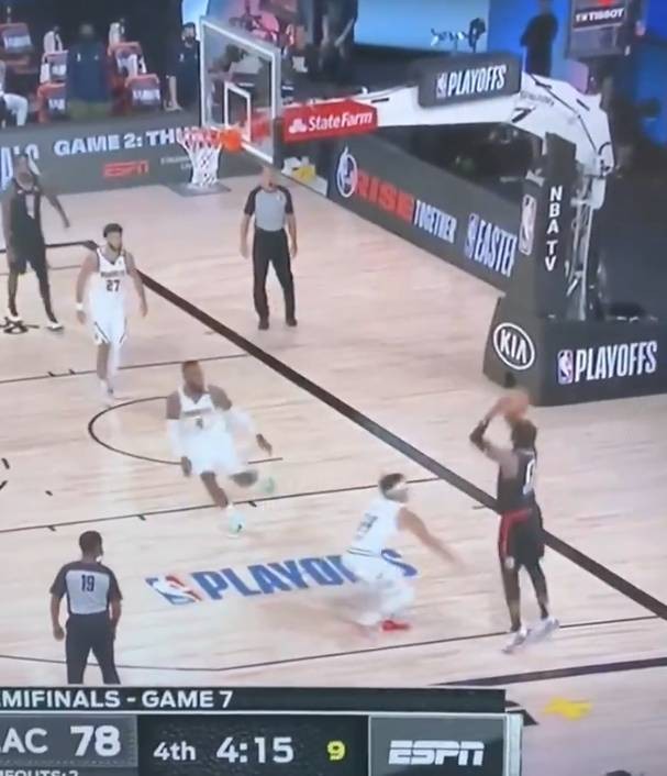 直播吧9月16日讯掘金今日再胜快船,4比3挺进西部决赛!比赛第四节,快船在追分时刻,乔治一次准空位的底角三分投出了离谱的结果——这球居然砸到了篮板上沿……GIF-乔治离谱底角三分(史蒂夫盖伦)