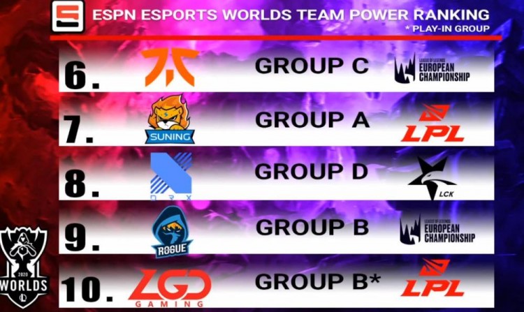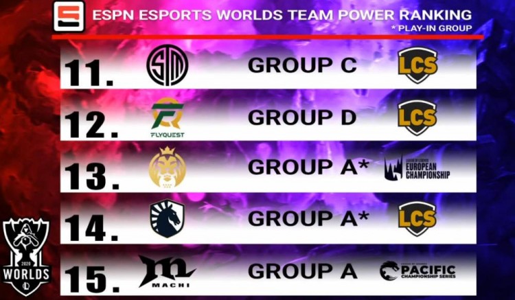 ESPN公布世界赛战队排行榜:TES第一,DWG第二2020-09-16 17:05:38 ESPN 9月16日讯 今日ESPN esports在twitch视频中发布了对于今