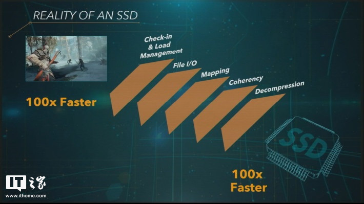 同时PS5将利用解压缩后的数据进行实时处理和加载,例如将数据输入到10.3TFLOP 2.23GHz的Navi GPU中进行实时渲染。这使PS5与当今最顶级的发烧级消费类PC存储性能相当。
