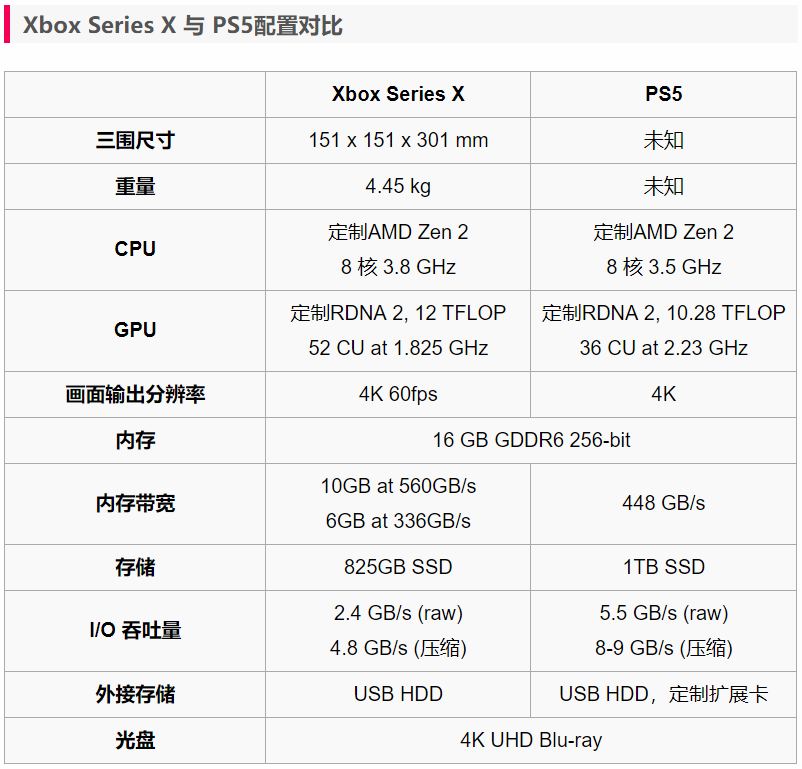 在微软公布了Xbox Series X 主机的详细配置之后,索尼PS5也终于姗姗来迟。近日,索尼公布了PS5的详细信息,就此,两大厂商之间的次世代主机之争就此拉开。让我们通过对这两款主机配置的对比,来看看它们究竟有什么差异。