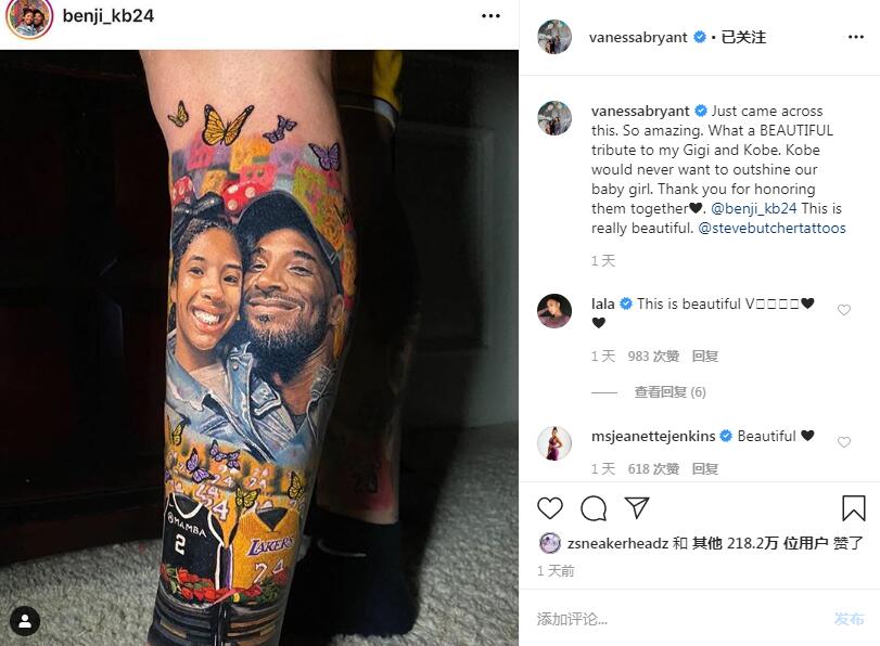瓦妮莎转发科比和Gigi文身并致谢球迷:美好的纪念方式2020-03-22 10:01:42 Instagram3月22日讯近日,一位球迷纪念科比和吉安娜的