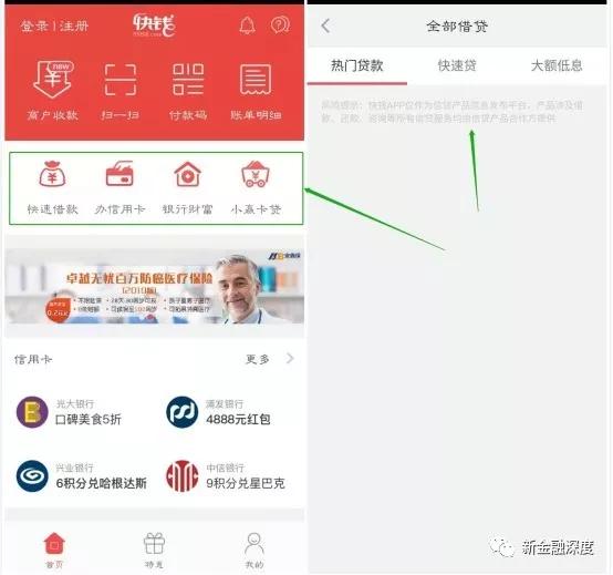 新金融深度发现,除了“升级中”的“快速借款”平台,目前APP首页的“小赢卡贷”仍可以正常申请贷款。另外,快钱钱包不仅为各银行办理信用卡、银行理财产品进行导流,还提供汽车金融和电商分期,其借贷平台为马上消费金融旗下的安逸花。但不管是小赢卡贷还是安逸花都深陷高利贷、暴力催收等丑闻。