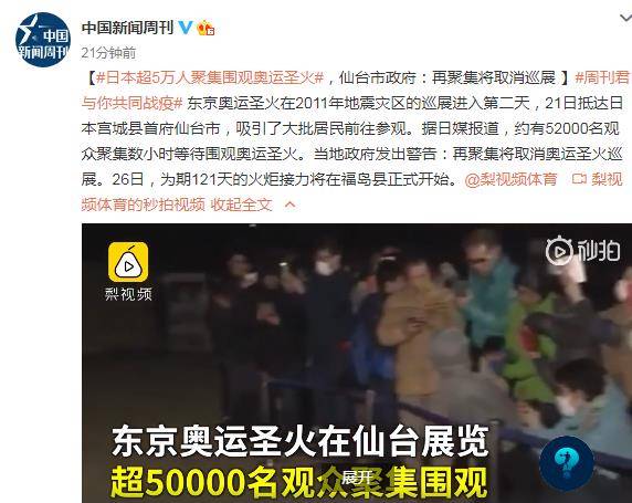 东京奥运圣火在仙台展览 超50000名日本观众聚集围观2020-03-22 12:33:04 微博3月22日讯 东京奥运圣火在2011年地震灾区的巡展进入