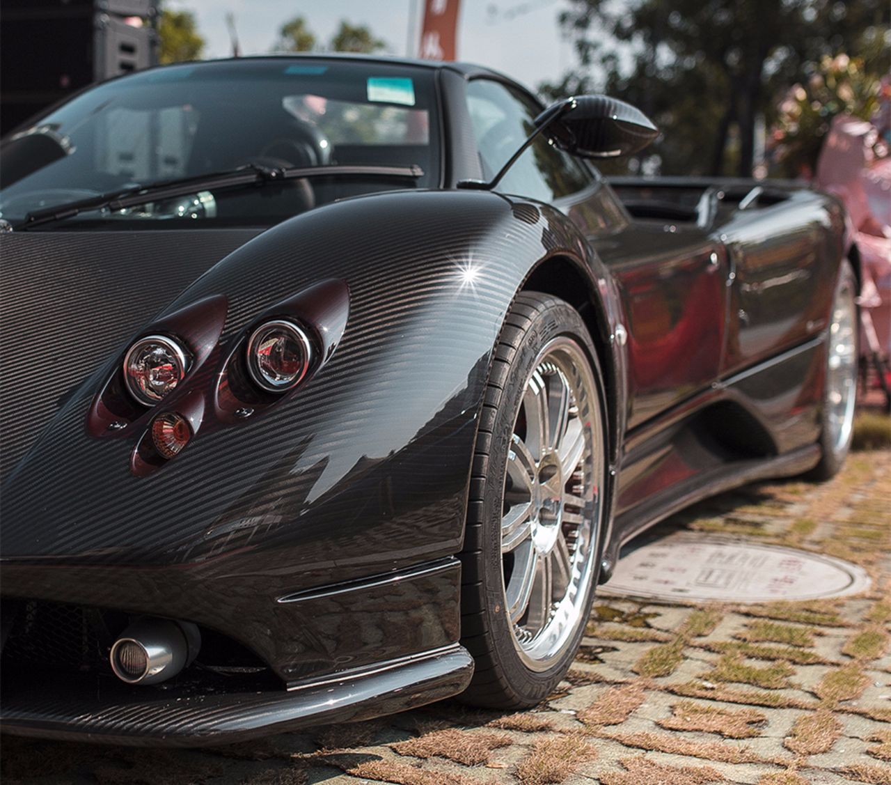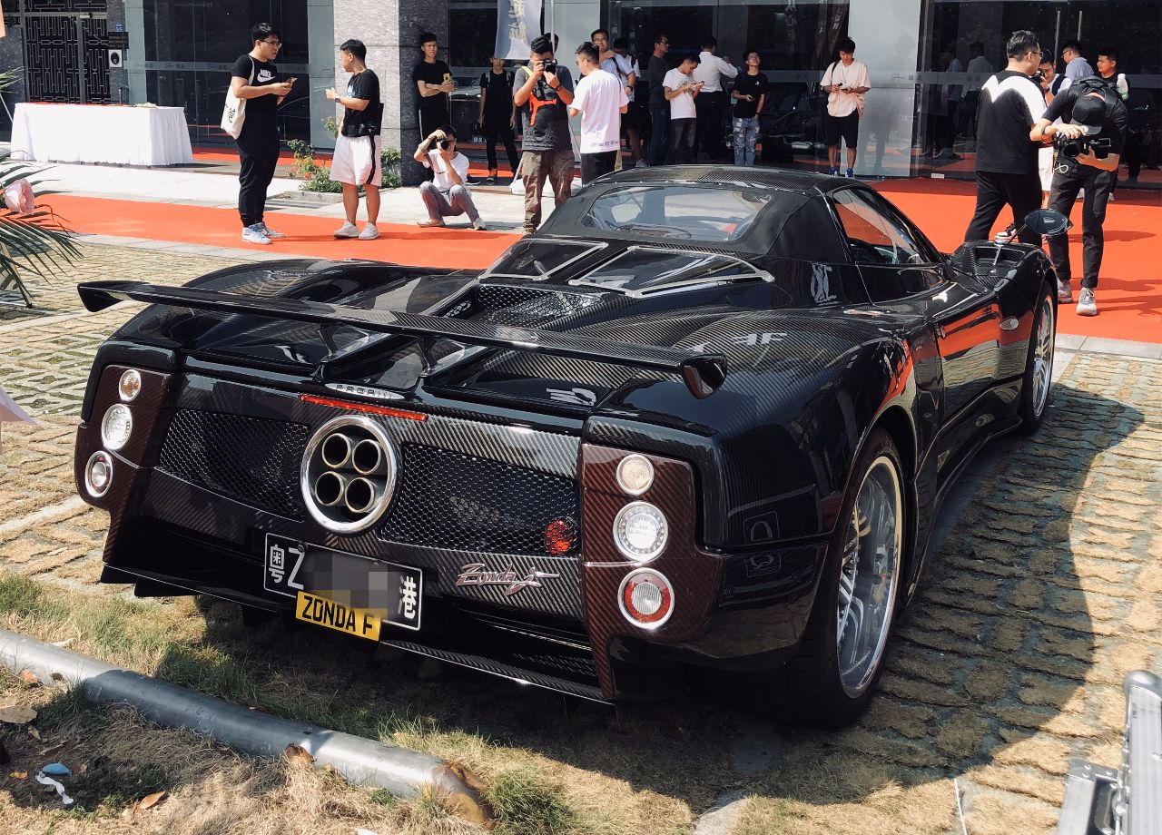 Chiron),布加迪 Grand Sport Vitesse Cristal Edition 水晶版,帕加尼 Zonda R,还有今天的主角帕加尼 Zonda F Roadster 。这是广东省第一台帕加尼 Zonda F,并且已经悬挂了粤Z黑牌,也说明了这台车只能在广东省内和香港行驶,再注意看,这是一台右舵的车,足以说明这台车的身份。它的出现,立刻吸引了车迷们的注意。