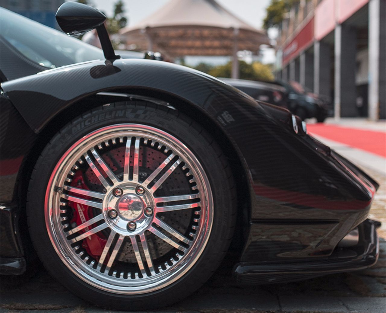 Zonda) F车头和车尾的设计都是以简约为主,整体的肌肉感更加强烈,四个巨大的排气管十分凶猛,似乎有吞噬一切的力量,类似喷气式飞机的排气管已经成了这台超级跑车的身份标识。铝合金细齿的轮毂,米其林定制的轮胎,碳纤维的刹车盘,这台超级跑车搭载了AMG的V12自吸引擎,传统手动变速箱,最大马力602匹,最大扭矩760牛米,百公里加速3.6秒。这么说吧,在1000转/分钟的状态下,能挂上6挡直接起步,这对普通轿车来说简直就是天方夜谭。