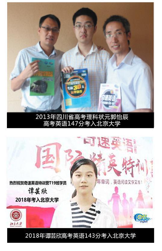 中差生逆袭,优生考上北大清华。奇速英语考前冲刺帮助全国无数中差生逆袭,优生考上北大清华:比如北大学子高考英语147分郭怡辰,北大学子高考英语143分谭芸欣等等都学习过奇速英语。