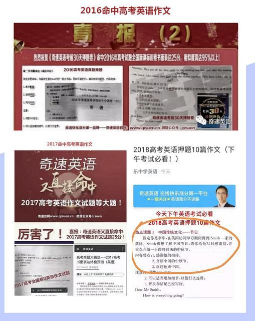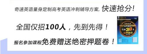 2016年、2017年、2018年奇速英语连续三年命中高考英语全国卷,作文相似度高达95%。如果你是高考生(基础生、偏科生、拔高生、艺考生)想要考前冲刺、科学提分。高三时间紧,刷万道题不如配合奇速高考考前备考课程,配套奇速英语单词突击营软件巩固复习课本单词+奇速英语时文阅读软件快速学会答题技巧,冲关各大高考难题。