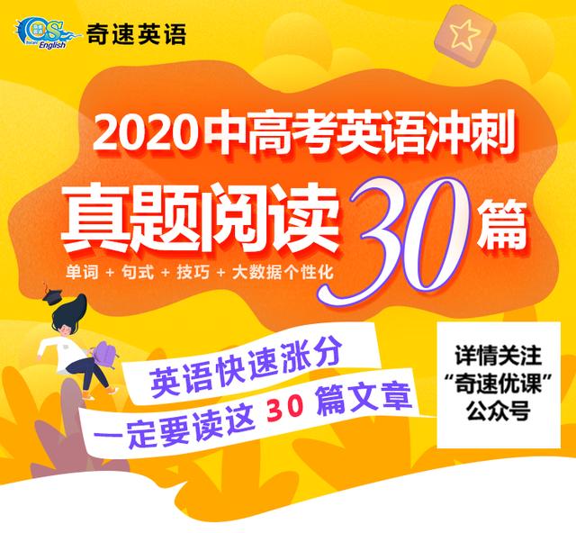奇速英语专家团队,为大家精选了30篇真题研读。这些文章不仅覆盖了新课标英语多种文体和话题,而且基本覆盖了考试大纲词汇(其他等量单词的阅读很难做到这些)。研读这些文章,不仅熟悉了考试词汇,还不知不觉地熟悉了各种句式和命题特点。