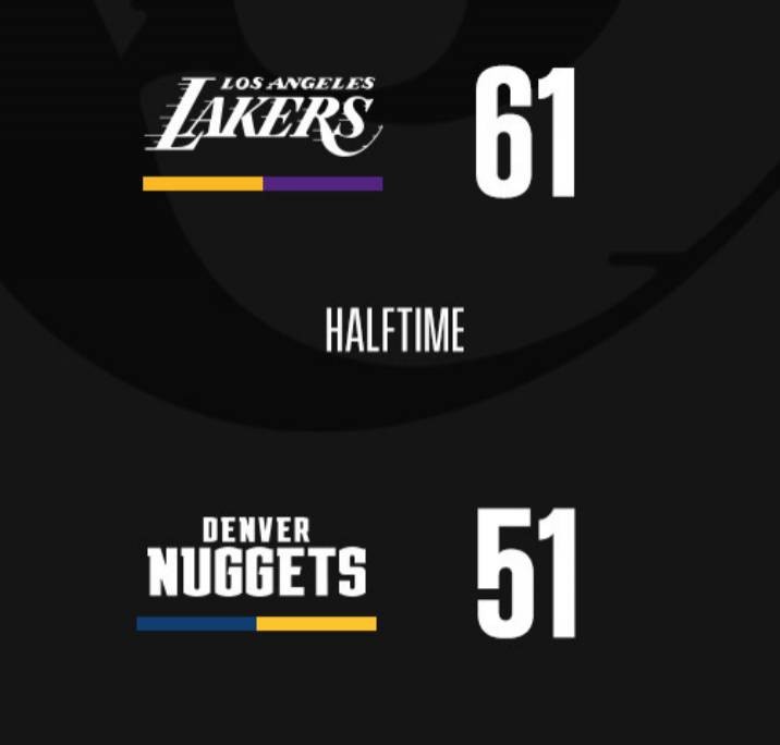 9月27日讯湖人VS掘金G5,上半场湖人61-51领先掘金10分。