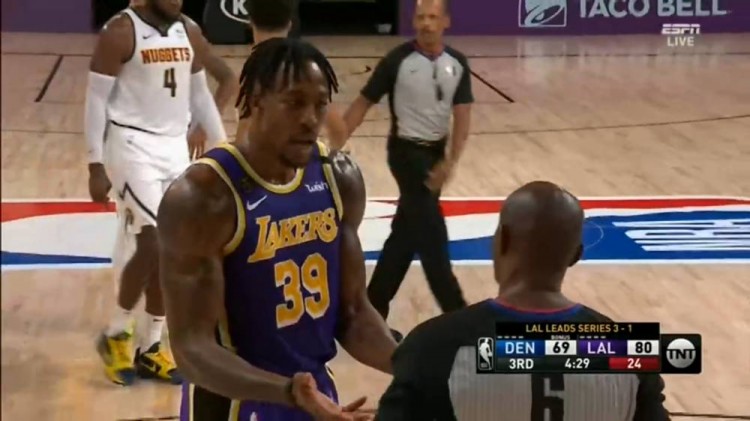 直播吧9月27日讯掘金和湖人系列赛第5场正在进行中。比赛进行到第三节最后4分钟,掘金连攻三次打成2+1+3:先是约基奇高位跳投命中,同时霍华德抢板推倒米尔萨普领到一级恶意犯规,米萨罚进1分,而在之后追