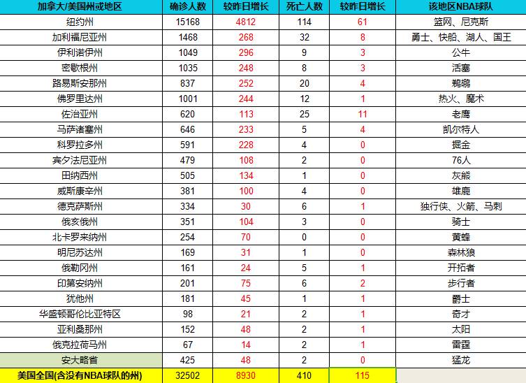 注:球队所在州来源维基百科,疫情数据来源于美国媒体CNN,北京时间3月23日统计数据,如有错误请吧友在评论区指出。