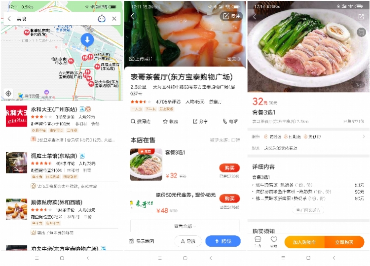 南都记者此前报道,高德地图在8月26日的更新版本中上线了小程序入口,同时,APP列表展示的部分餐厅已经可以提供购买菜品的外卖服务,点击购买后,页面会跳转支付宝、随即链接到口碑平台商户的订单页面。附近的“周边美食”推荐排名信息,涵盖了餐厅的位置、人均消费价格、评分、餐厅关键词(装修风格、环境、菜式口味等),与美团等本地生活服务平台餐厅展示方式颇为相似。