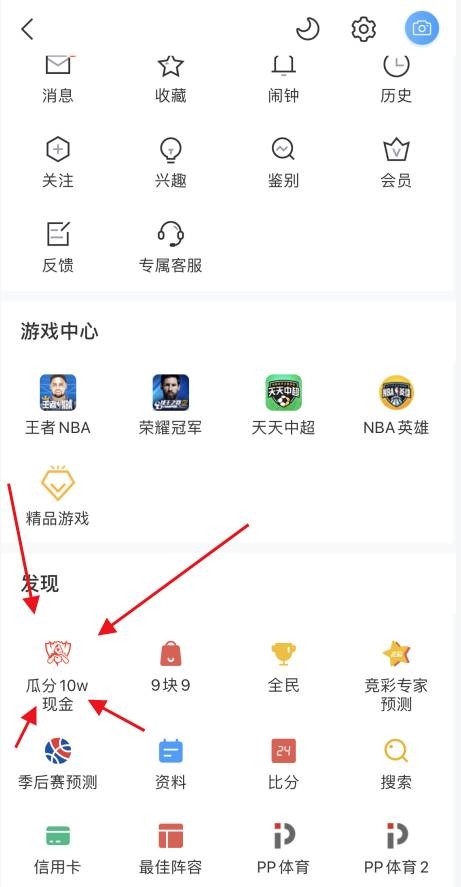 2.点击左上角头像,进入个人中心,在发现频道找到【瓜分10w现金】