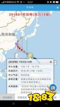 台风路径:显示当前西北太平洋活动的台风路径信息,同时可以查询历史台风,叠加云图、雷达图等气象资料。