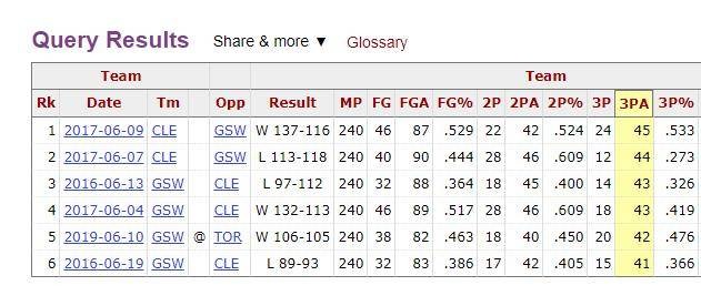 此前的纪录由2017年6月10日的骑士队创造(45记),他们的对手是勇士。