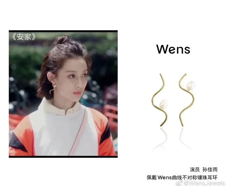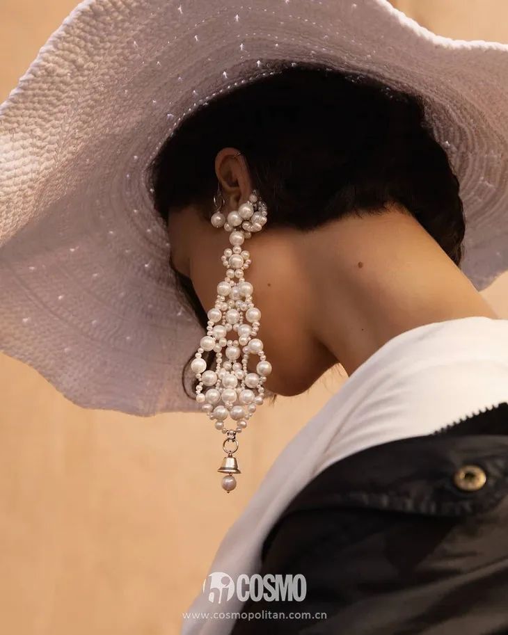 异性珍珠元素也常常点缀于饰品中,朱闪闪在剧中就一连戴了品牌两款珍珠耳环,一款是有趣的小栅栏,另一款是不对称的镶珠波浪,彰显职场萌新的鬼马小个性。