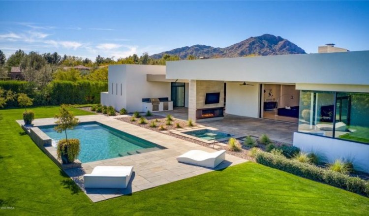 该豪宅坐落于凤凰城郊区天堂谷,位于距离太阳主场东北方向大约15英里处,建于2016年,以时尚、现代的风格闻名。