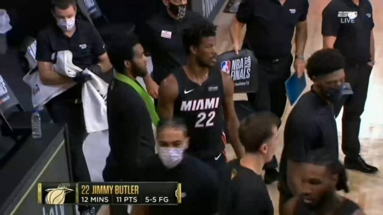目前第一节比赛结束,热火22-27暂时落后湖人。热火球星巴特勒手感仍然滚烫,打满首节5中5砍下了11分2板2助。