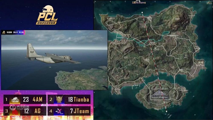 海岛图决赛圈 3 支队伍,4AM 满编、天霸和 AG 都是 3 人编制,圈 8 刷新,4AM 控制着圈边的反斜坡,蓝圈刷新,AG 开始进圈被 4AM 和天霸夹击淘汰,最终 4AM 4 打 3 天霸,天霸的 3 人站位较为集中,4AM4 人拉开枪线,利用投掷物侧边 112 和韦神分别击倒天霸一人,成功吃鸡