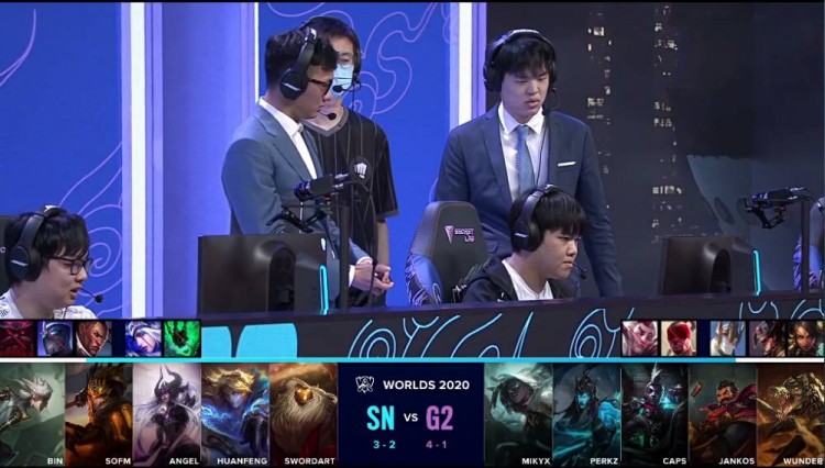 10月8日讯 S10小组赛第二轮A组的最后一场比赛继续进行,本局将由SN对阵G2,本场若SN胜出则他们将与G2加赛争夺小组第一;若本场SN失利他们将与TL加赛争夺小组第二的名次。