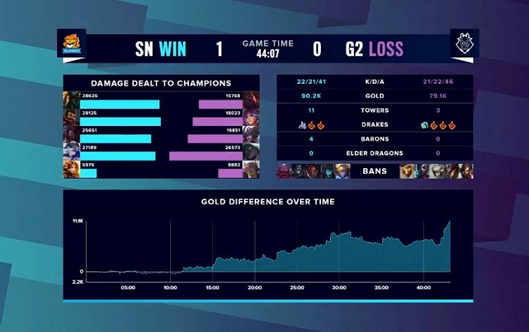10月8日讯 S10小组赛第二轮A组进行到了加赛,对阵双方是SN和G2,本场胜出的一方将以A组榜首的身份晋级淘汰赛。