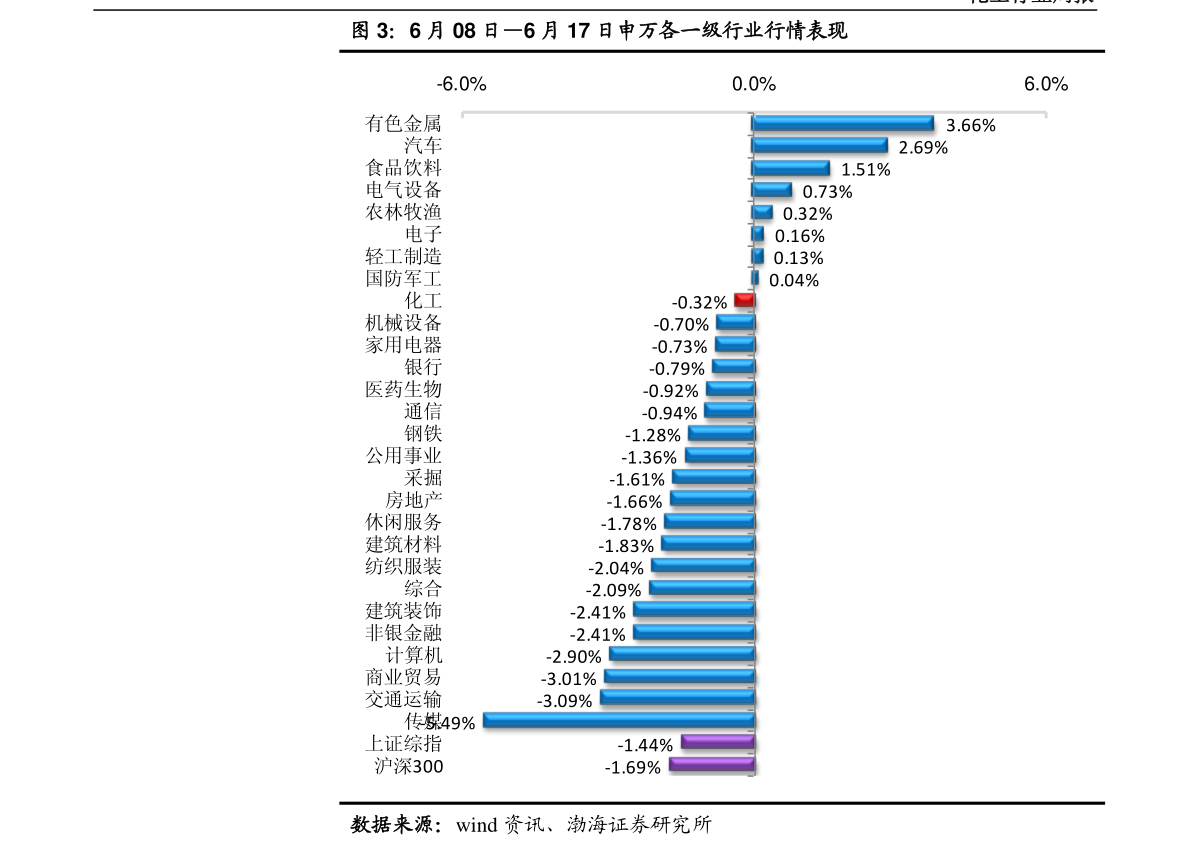 6.换行大豆国内部分港口大豆分销价格稳定换行今日国内进口大豆港口分销价保持稳定,其中,广州黄埔港5000元/吨,价格稳定;浙江宁波5000元/吨,价格稳定;江苏张家港4950元/吨,价格稳定市场回顾:上周,化工板块下跌3.38%,沪深300指数下跌1.43%,化工板块跑输同期沪深300指数1.95个百分点。