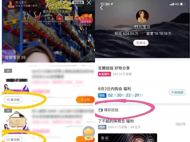 此外,淘宝直播也是目前为止,所有直播平台里唯一一个提供回放功能的平台。淘宝直播为每件商品都设置了节点,消费者直播结束后就能点进去观看,从多个角度了解商品。