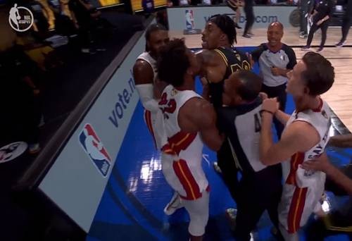 暂停之后,热火以纳恩+巴特勒挡拆二人转发起,利用湖人挡拆换防找库兹马单挑,巴特勒持续单挑接管。湖人以防守反击为主,勒布朗、隆多、浓眉连续扮演反击引擎,单骑闯关、追身三分、冲阵袭筐前赴后继,勒布朗单节15分率队一度将分差迫近至3分。