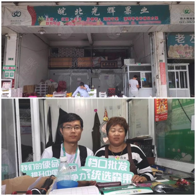 贵港果品总部在上海,合肥分部是去年刚成立的。周谷堆市场档口位置还有点紧俏,没有空余档口,只好临时租了个大棚。不过接入森果的过程倒是十分顺利,聊了一两次就决定接入森果了。