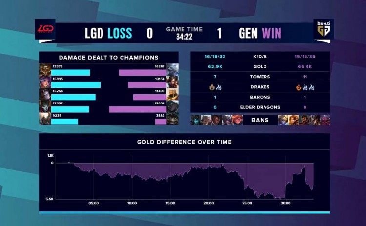 【32:50】LGD决定放掉第三条小龙推掉中路水晶,LGD决定亡命一波直接基地但被GEN反团灭,GEN完成反一波结束比赛。