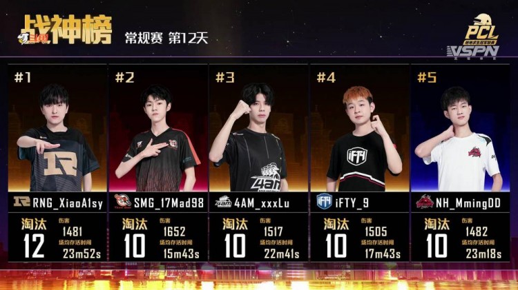 10月13日讯 2020PCL秋季赛常规赛十二日全部结束,今日参赛队伍有:RNG、NEXT、TSG、WOLVES、4AM、NH、OMG、SMG、LYG、KX、IFTY、OIG、CTG、QM、QG、LGE