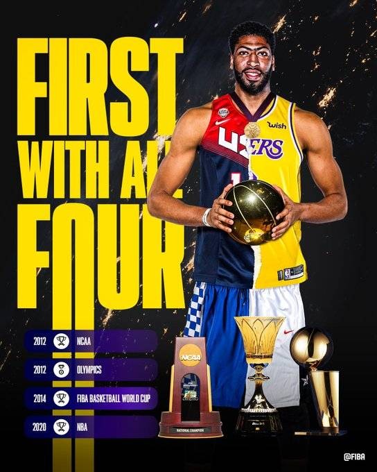 根据FIBA公布的数据,夺得NBA总冠军之后,浓眉成为了篮球历史上第一个包揽NCAA总冠军、奥运会冠军、世界杯冠军和NBA总冠军的球员。