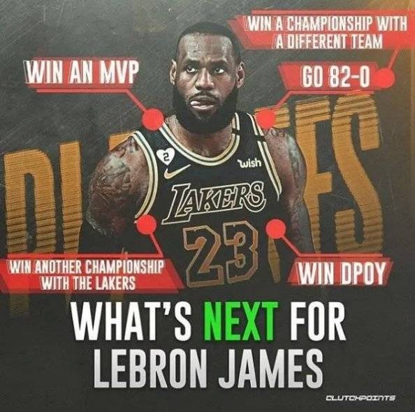 直播吧10月14日讯美媒ClutchPoints提问:詹姆斯的下一个成就是什么?在本赛季常规赛MVP评选中詹姆斯排名第二,率领湖人常规赛位居西部第一,最终夺得总冠军拿下FMVP。1、再拿一个常规赛MV
