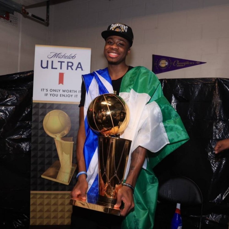 10月14日讯科斯塔斯-阿德托昆博今天更新社交媒体,晒出一张和总冠军奖杯的合影。