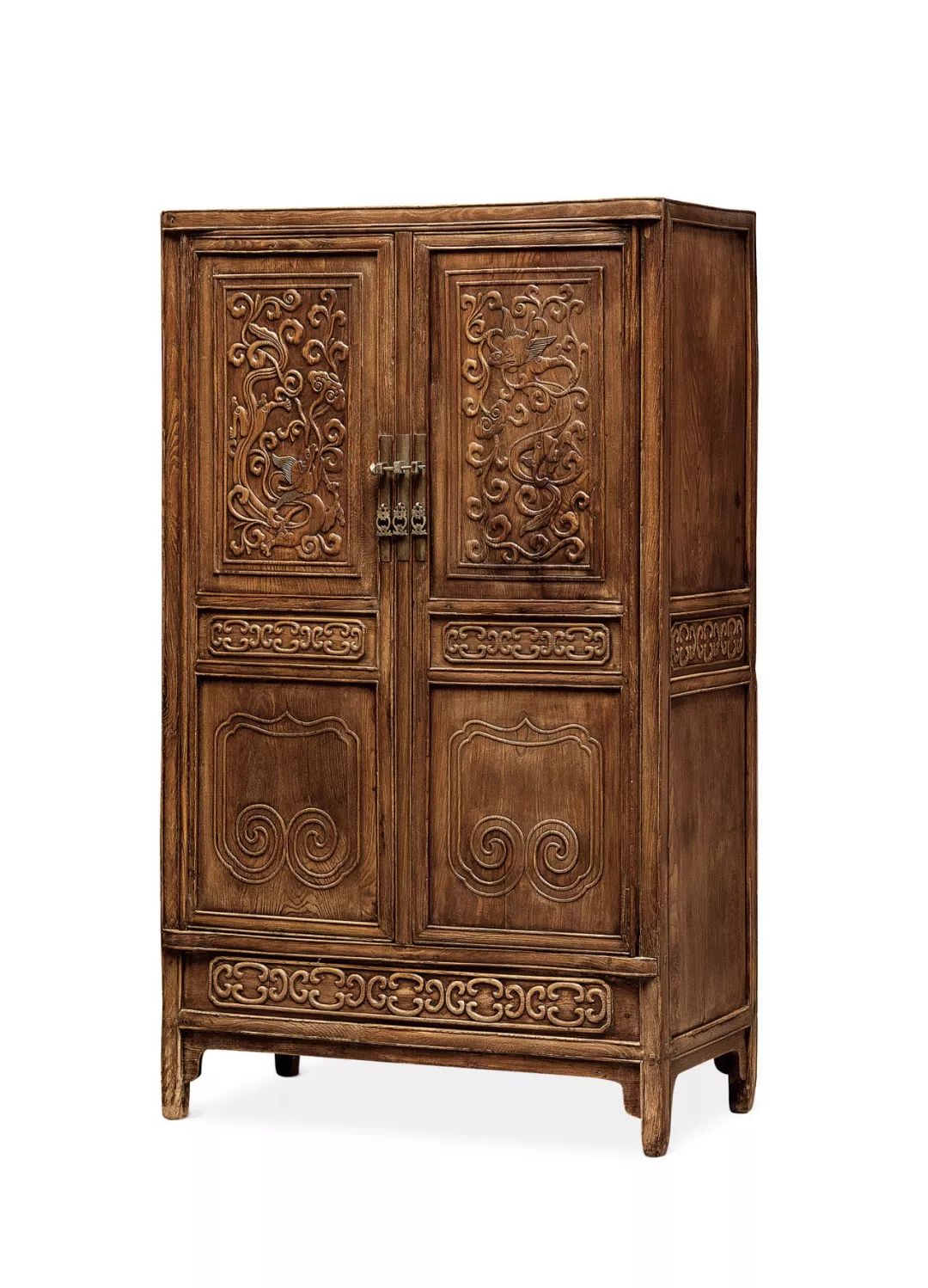 除了造型大气,色泽纹理优美之外,体现榉木家具之美的,还有它的精美纹饰。明代榉木家具与黄花梨家具均不尚雕刻,到了清代,它与其他硬木家具一样出现了大量雕刻精美的纹饰,有浅浮雕、高浮雕、圆雕、透雕和线刻等多种雕刻手法。雕刻的主要纹饰图案有人物、花卉、动物和云纹、雷纹和仿三代古铜、汉石刻及玉刻工艺等图案。造型纹饰丰富多彩,无所不有,显示出古色古香、高贵典雅的艺术形象。由于榉木家具的大量存世,今天我们有幸可以全面欣赏到明清两代家具精美的纹饰,而这一点,在硬木家具中已很难做到。由此,榉木家具的历史和艺术价值可见一斑。