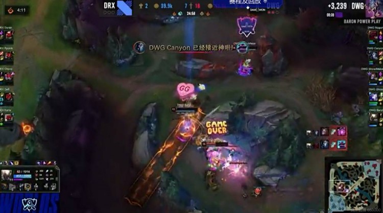 DWG杀人诛心!团灭DRX亮标嘲讽2020-10-15 20:59:30 10月15日讯 今日DWG在对战DRX的第三局比赛中,最后一波团战团灭了DRX后,亮起
