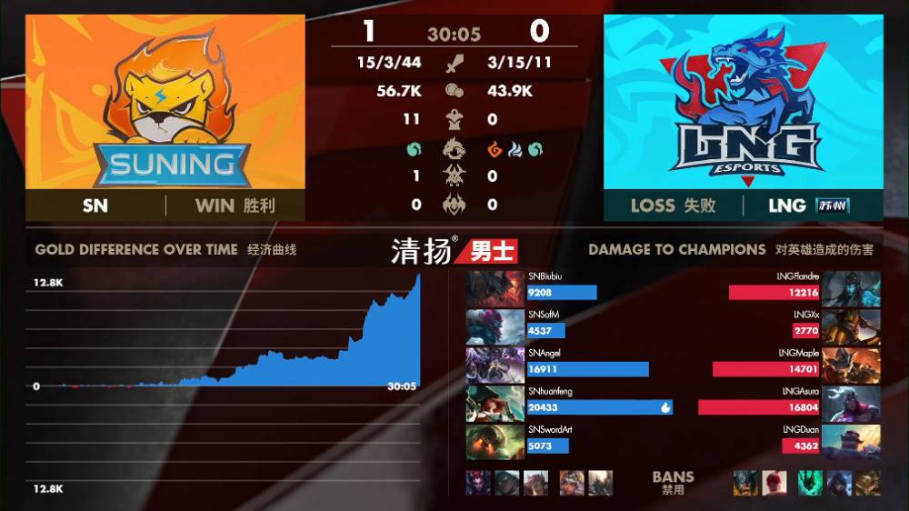 【18:05】双方在中路开启团战,SN先取得优势,随后SN皇子上头欢乐送带着队友给出团灭,LNG逆转劣势。