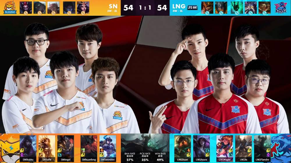 3月24日讯 LPL春季赛第四周的第二个比赛日,第二场比赛将由SN vs LNG。SN目前战绩三胜三负位列第九而LNG四胜二负暂列第六位。