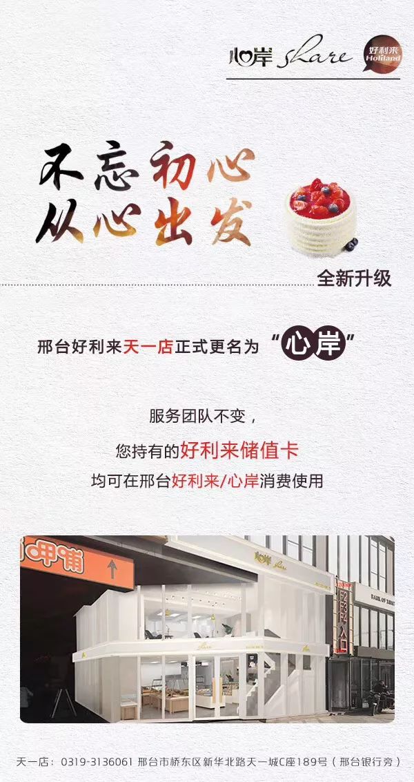 自今年3月2日,微信公众号“好芙利”便持续发表更名公告,表示好利来自2019年起,决定实施多品牌发展战略,原“好利来”除一线城市外,其余片区市场分别更名为“好芙利”、“甜星”、“心岸”、“蒲公英”、“麦兹方”,其中所属中原公司旗下吉林(注:指吉林市)、铁岭、锦州、大同、烟台、佳木斯、阜新、济宁、赤峰60余家店统一更名为“好芙利”。
