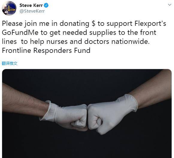 科尔呼吁向医疗机构捐款 支持抗疫前线的医务人员2020-03-25 08:10:20 Twitter3月25日讯 勇士主帅科尔在社交媒体呼吁向医疗结构捐