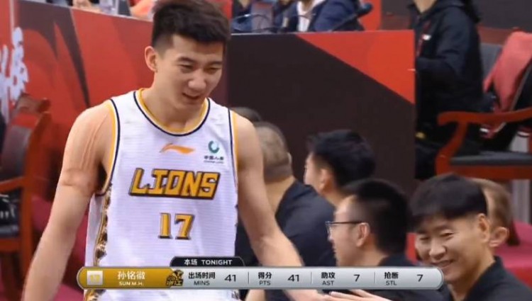 全场比赛,孙铭徽出战41分钟,26投16中,轰下41分1篮板7助攻7抢断。