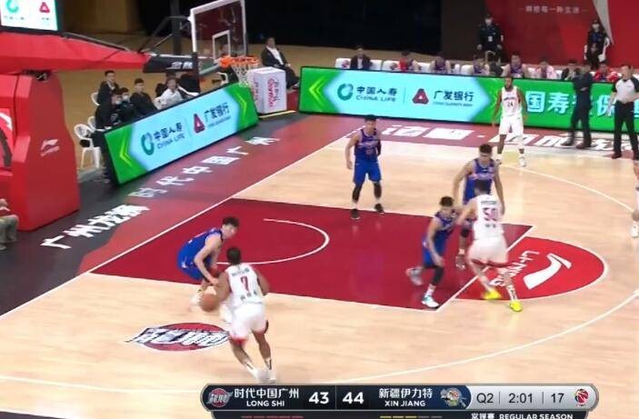 10月18日讯CBA常规赛广州VS新疆比赛的上半场,新秀祝铭震上演精彩进球。
