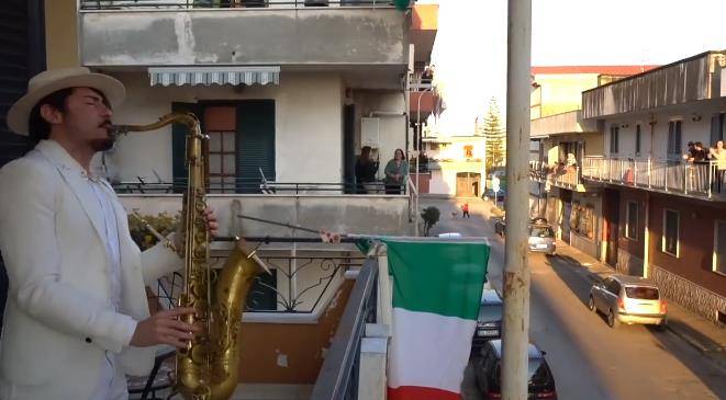 3月25日讯 新冠疫情在多国蔓延,无数居民隔离在家,意大利街头萨克斯演奏家Daniele Vitale在自家阳台搞起了浪漫。